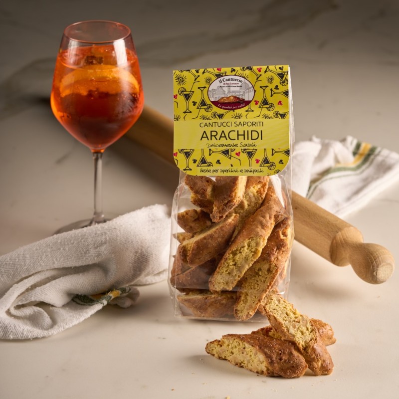 › Dolcemente Salati: Le arachidi salate tostate conferiscono ai nostri cantucci un sapore salato delicato e invitante, bilanciato dalla dolcezza della pasta biscotto.
