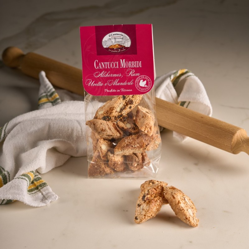 Sperimenta l'ebbrezza del gusto con i nostri Cantucci Morbidi Artigianali al Alchermes, Rum, Uvetta e Mandorle, una delizia fiorentina che renderà ogni momento un'occasione di festa.