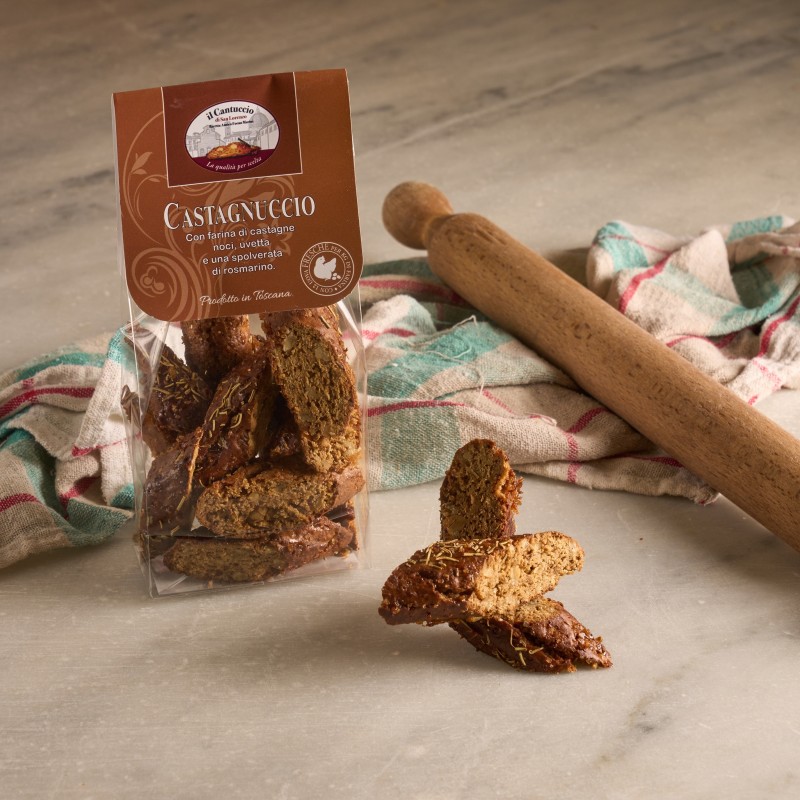 Con il nostro Castagnuccio, immergiti nei sapori autentici dell'autunno toscano e condividi un'esperienza unica con famiglia e amici. Perfetti per chi ama i dolci tradizionali, questi cantucci morbidi porteranno un tocco di calore e genuinità alla tua tavola.