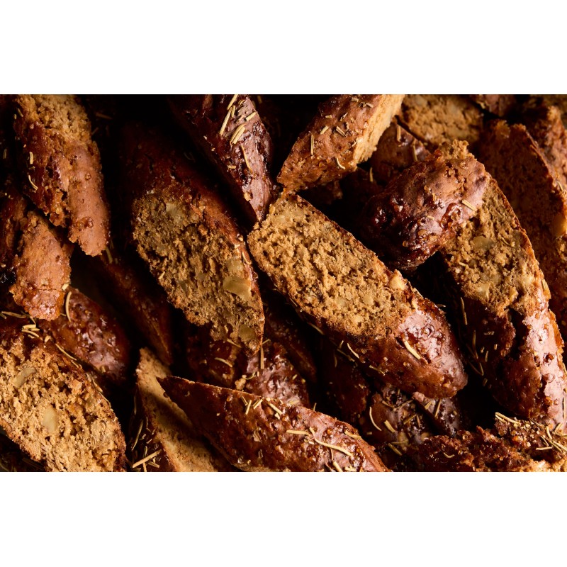 › Gusto Autunnale: Il sapore ricco e avvolgente della farina di castagne, combinato con noci, uvetta e una nota aromatica di rosmarino, evoca l'essenza dell'autunno toscano.