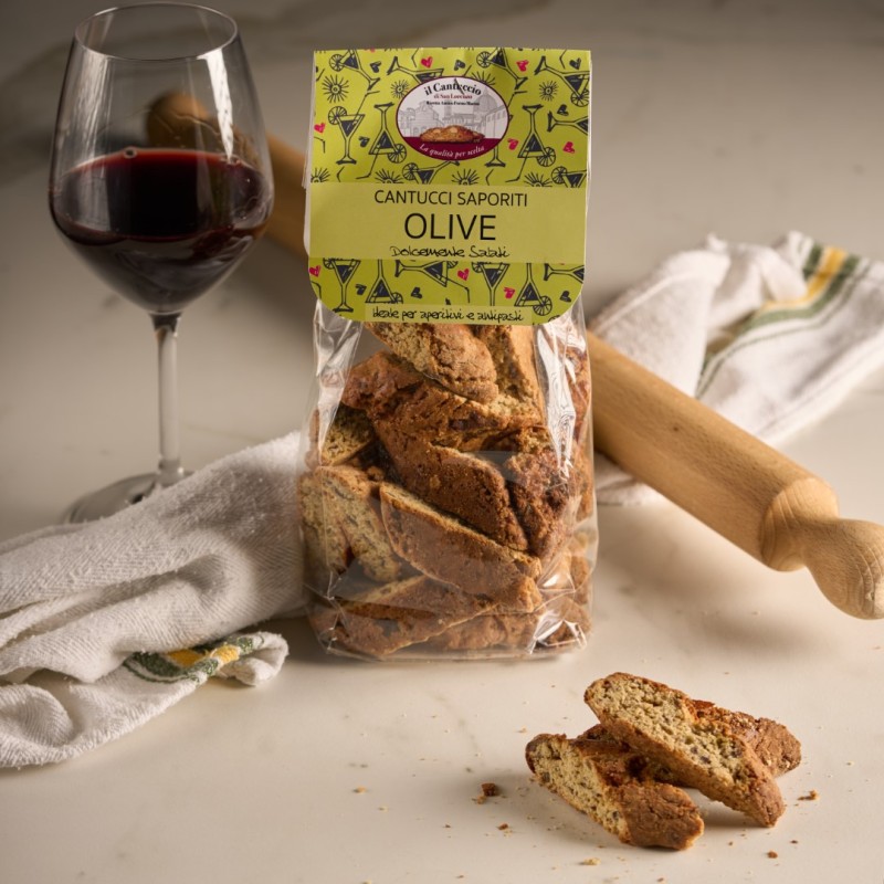 › Dolcemente Salati: Le olive Taggiasche conferiscono ai nostri cantucci un tocco salato delicato e raffinato, perfetto per accompagnare una vasta gamma di formaggi e vino rosso.