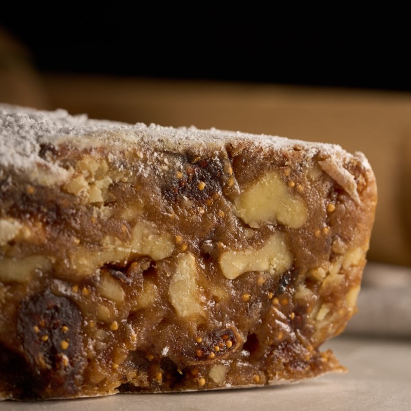 Al primo morso, il Panforte con Fichi Secchi e Noci rivela una consistenza morbida, arricchita dai sapori intensi e naturali della frutta secca. La dolcezza dei fichi secchi si sposa perfettamente con la croccantezza delle noci.