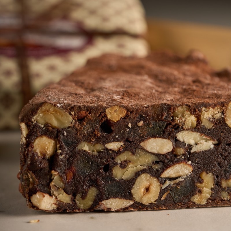 Il PanPepato è un dolce unico e ricco di tradizione, perfetto per veri intenditori che amano i sapori intensi e speziati. Questo particolare dolce è realizzato con una base di miele, frutta secca e spezie, con l'aggiunta di cacao che conferisce all'impasto un colore scuro e un gusto ricco. La vera caratteristica distintiva del PanPepato, oltre alla numerosa frutta secca, è la combinazione di spezie: pepe nero, zenzero, cannella e noce moscata.