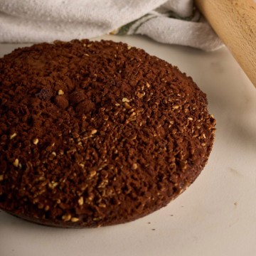 › Granella di Nocciole Tostate: La superficie della torta è decorata con granella di nocciole tostate, aggiungendo una piacevole croccantezza e un aroma tostato che esalta il sapore del cioccolato.